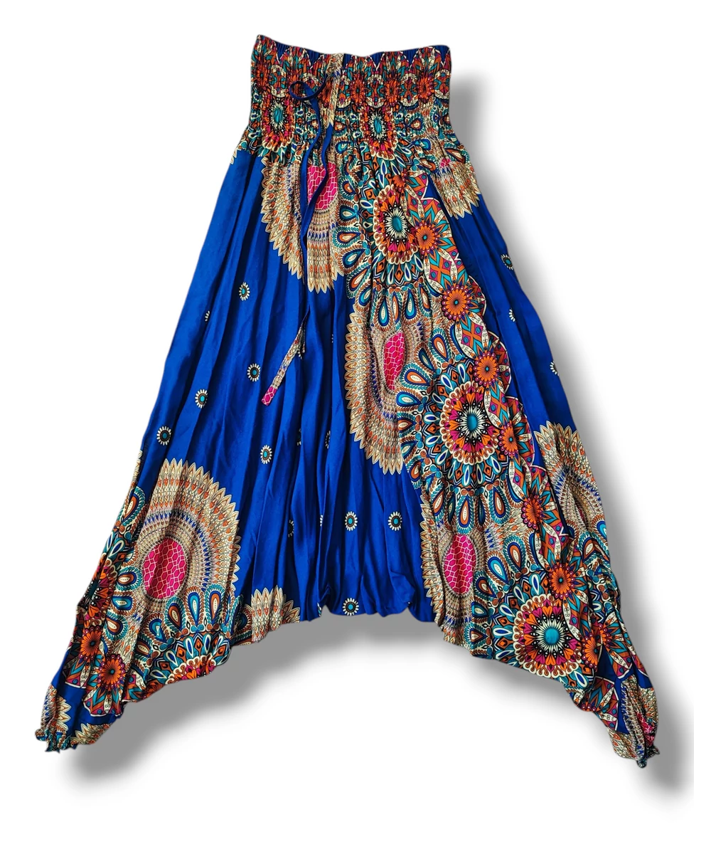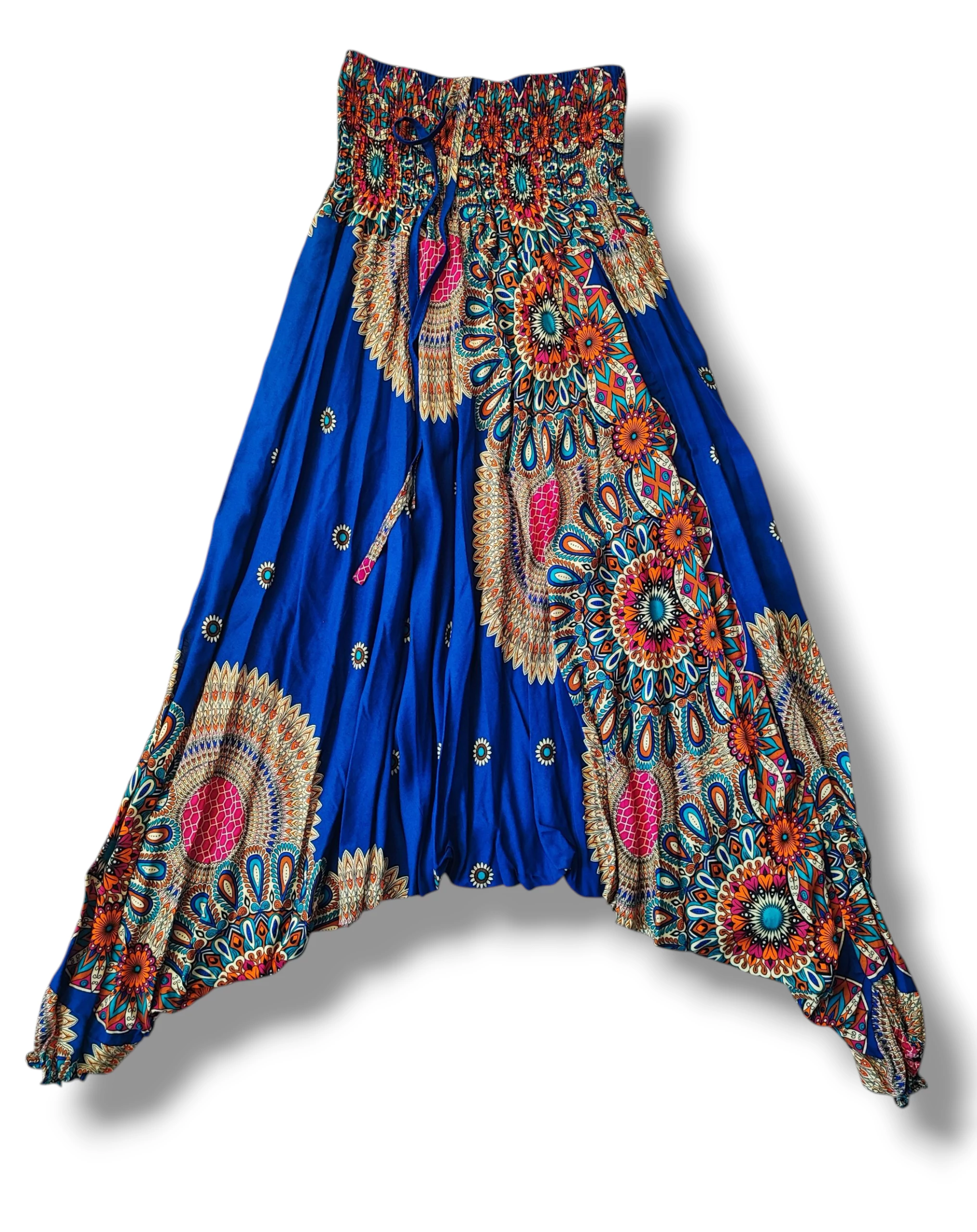 Buggyos, ejtett ülepű thai nadrág. Keleties, egzotikus minta, szellős és könnyed viselet.