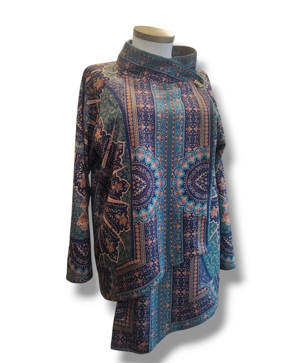 Átlapolós kabát/ kardigán - velúr, mandalás