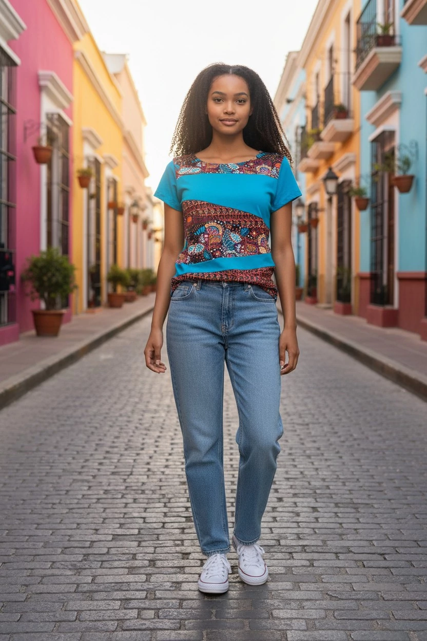 97% pamut, 3% elasztán felső vidám, bohém stílusban.