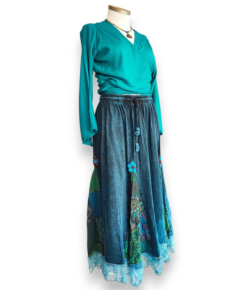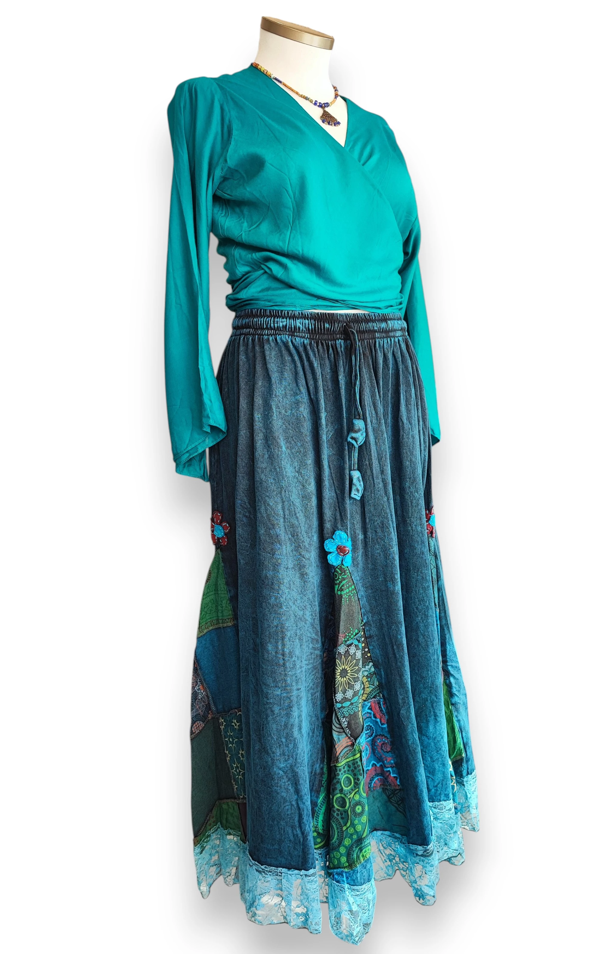 Fodros, csipkés nepáli maxi szoknya - hippy, kék