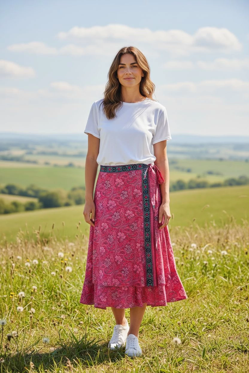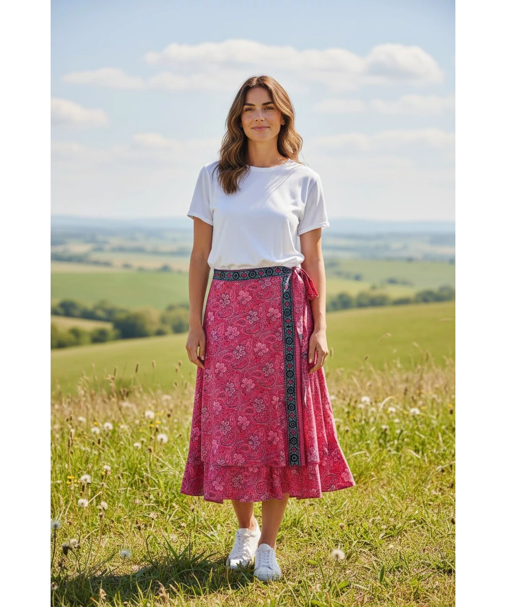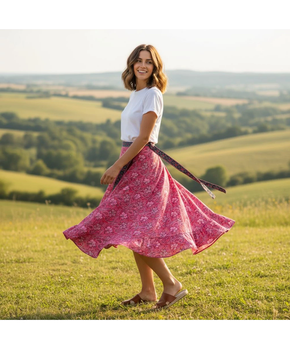 Dupla rétegű, átlapolós indiai lapszoknya. Vidám, keleties minta.
