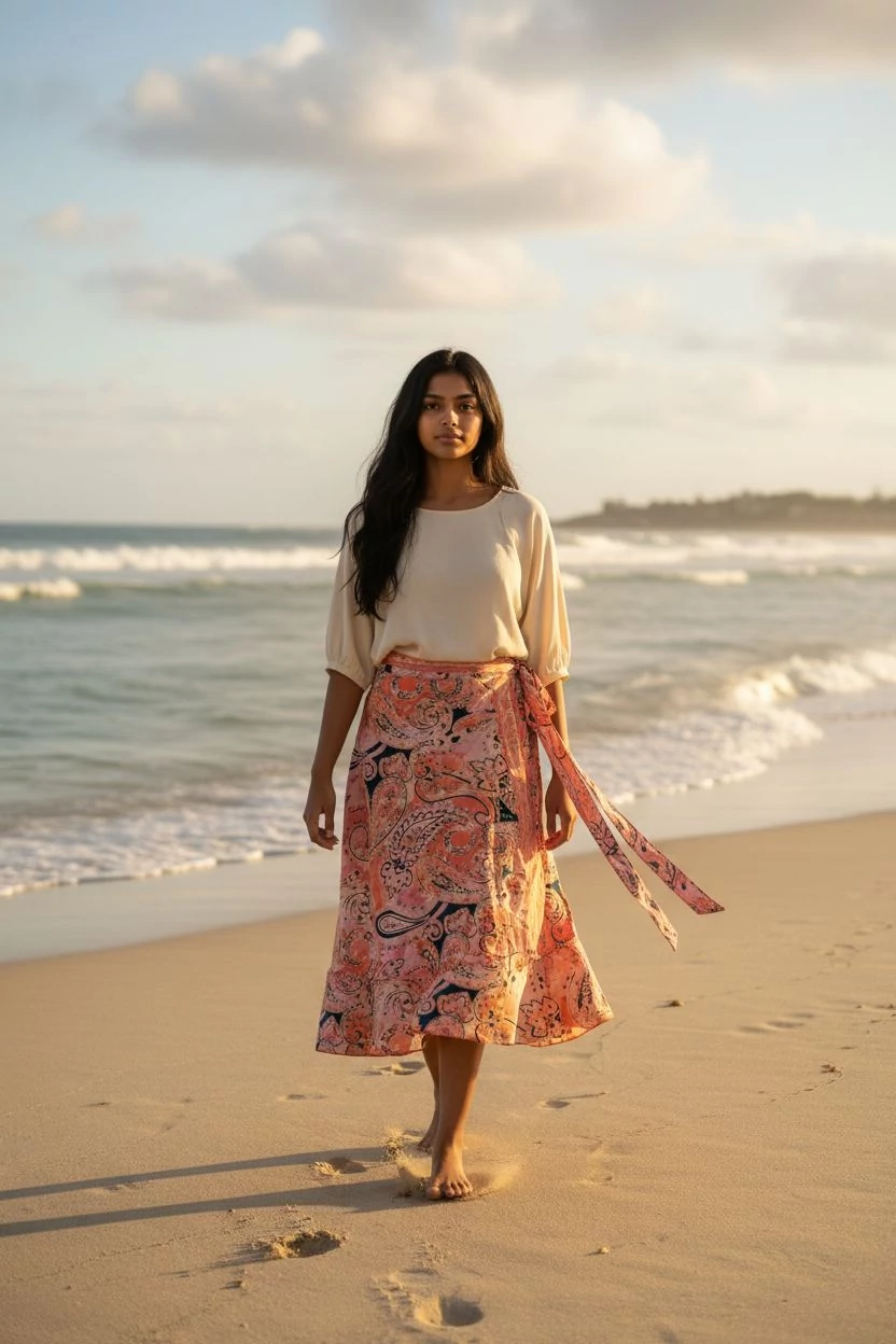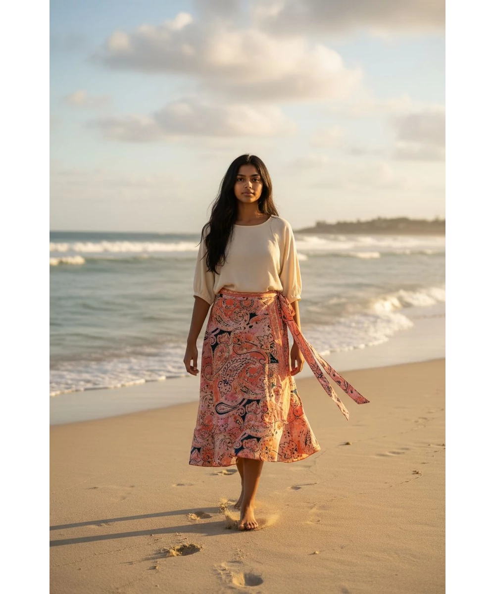 Dupla rétegű, átlapolós indiai lapszoknya. Vidám, keleties minta.