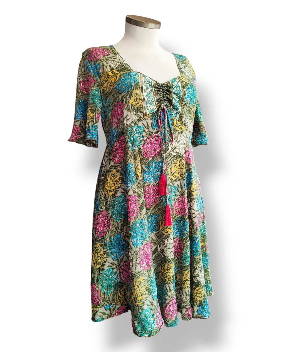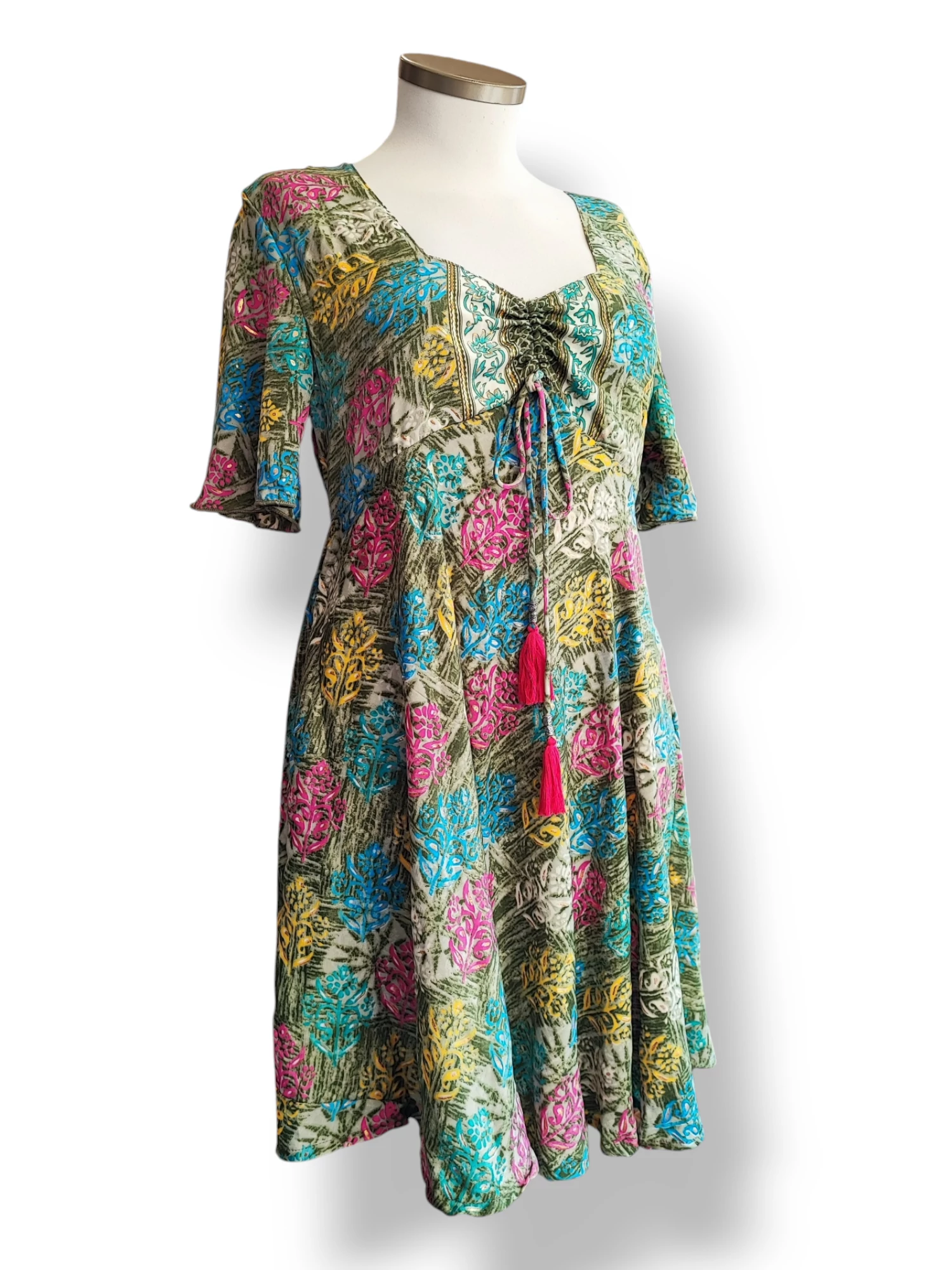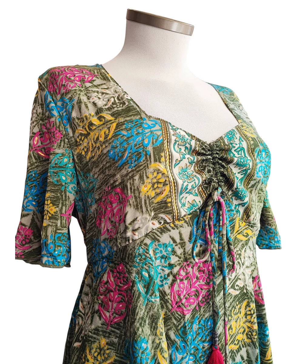 Mini hosszúságú, karcsúsított fazonú indiai ruha. Anyag: műselyem