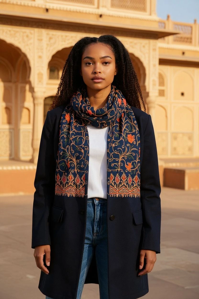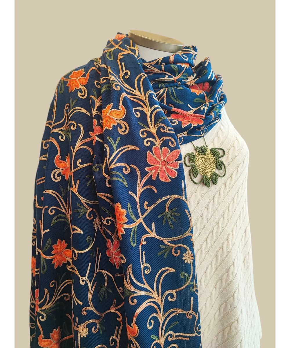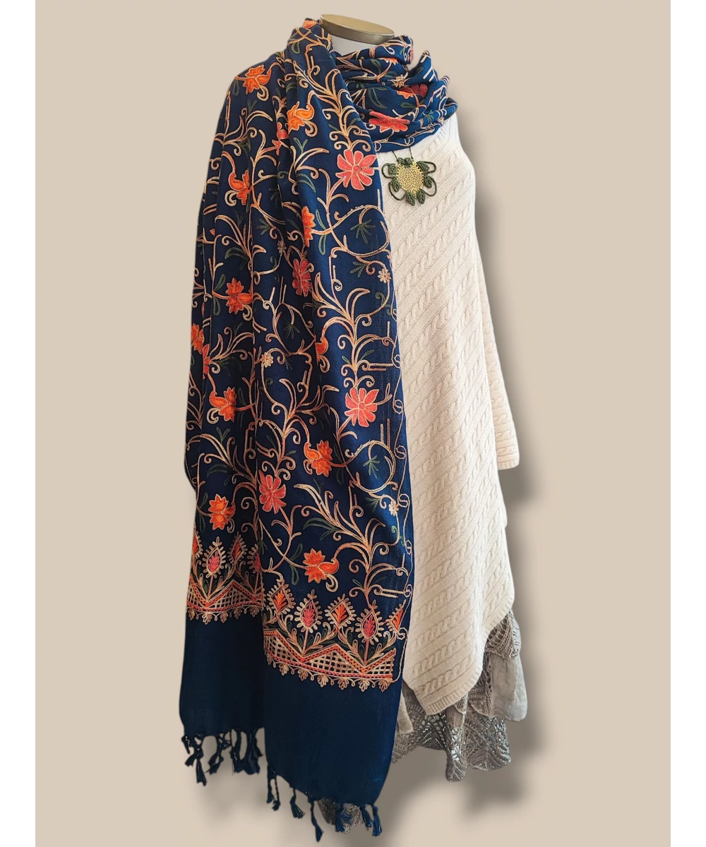 Gazdagon hímzett indiai stóla rózsa mintával. Anyaga viszkóz és gyapjú keverék.