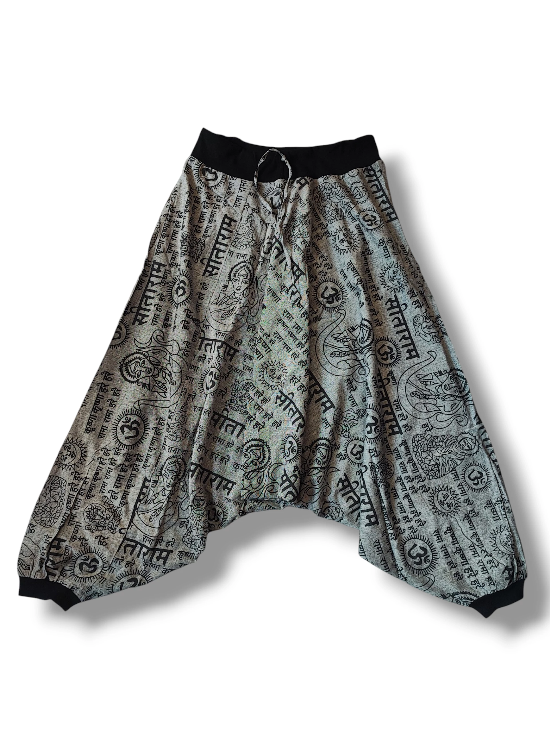 Derék résznél kötős aladdin nadrág, spirituális mintákkal. Made in Nepál.