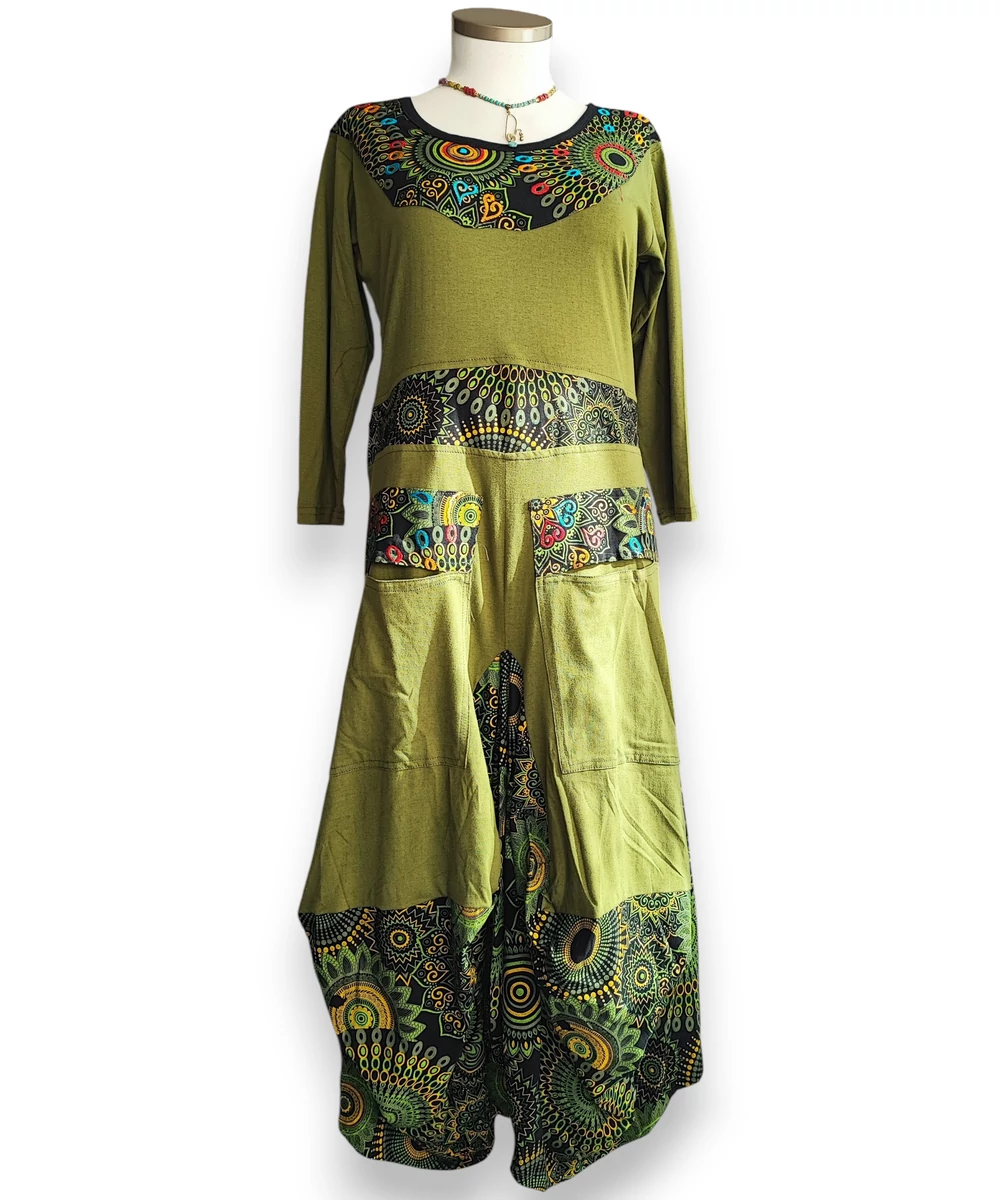Nepáli, buggyos aljú maxi ruha - zöld