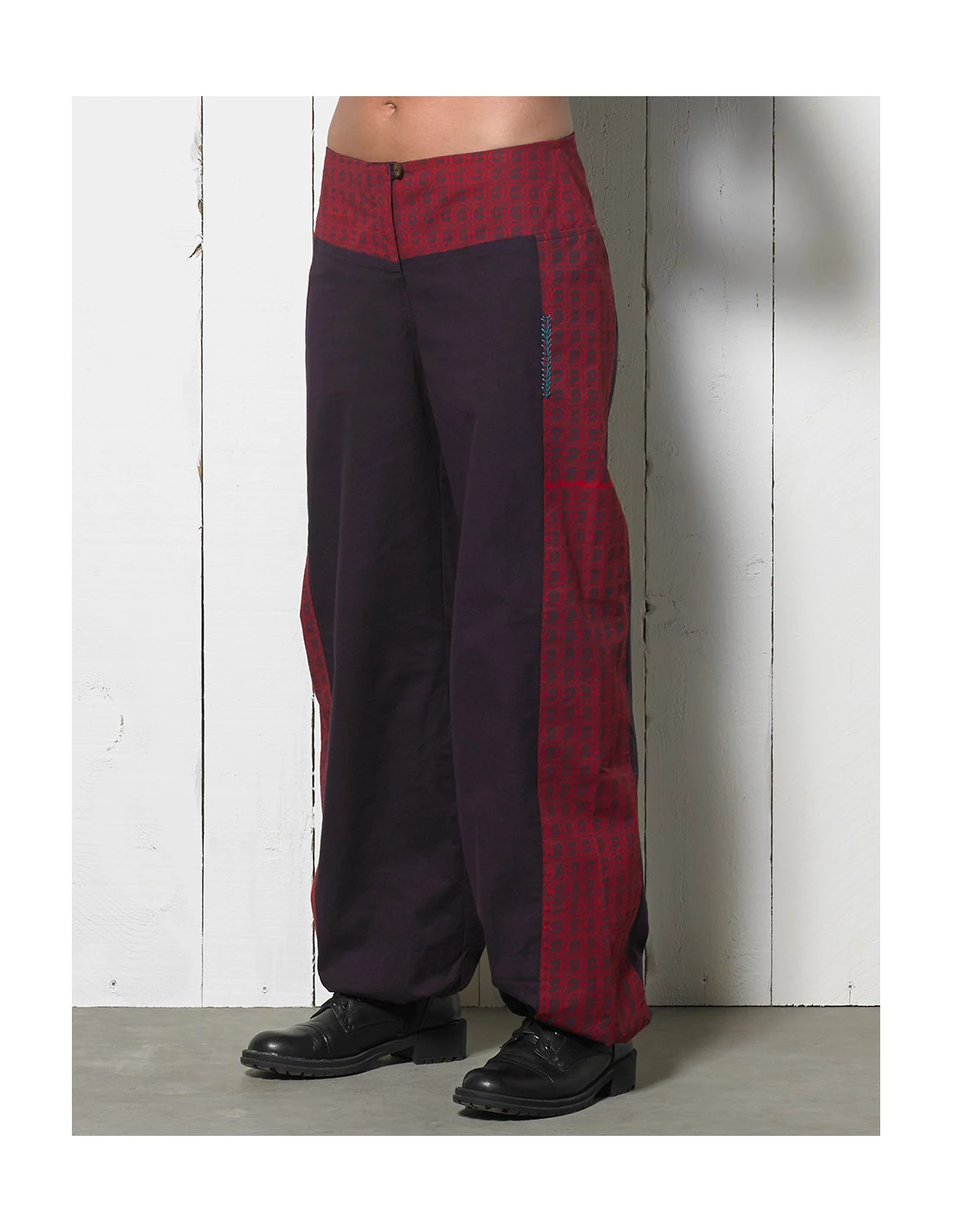 Női pamut nadrág - padlizsán, piros alapon apró mintás